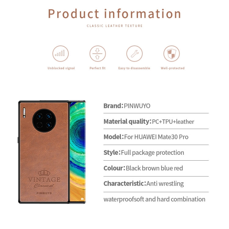 PINWUYO Pin Rui Series Classical Leather, PC + TPU + PU Leather Waterproof and Anti-fall All-inclusive Protective Case, For Huawei Mate 30 Pro